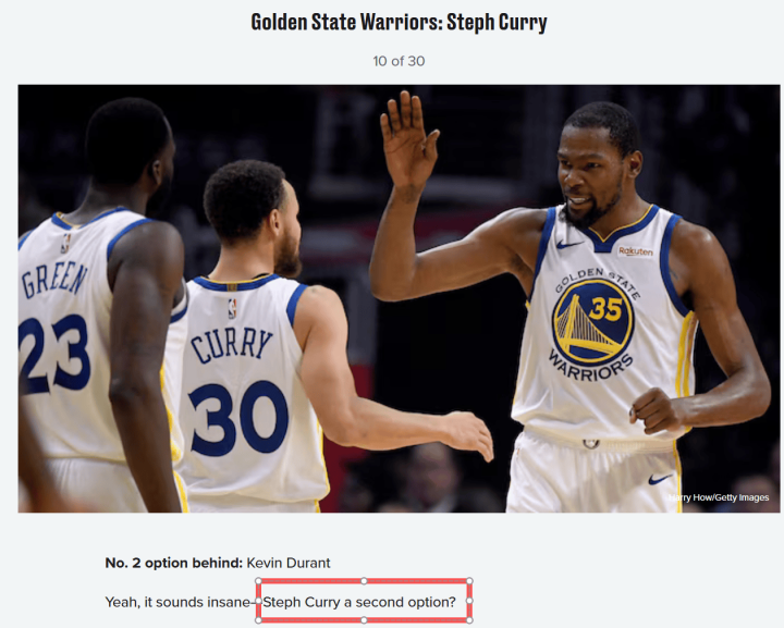 对此,Bleacher Report给出了解释:“确实,这听起来很不可思议,库里居然甘当第二选择?但在勇士队的杜兰特时代,事实正是如此。这位历史上最具威胁的射手,主动调整了自己的打法,为杜兰特的发挥让出空间。多数处于同样位置的超级巨星可能会心生不满,要求掌控球权,而库里的选择完全相反。”